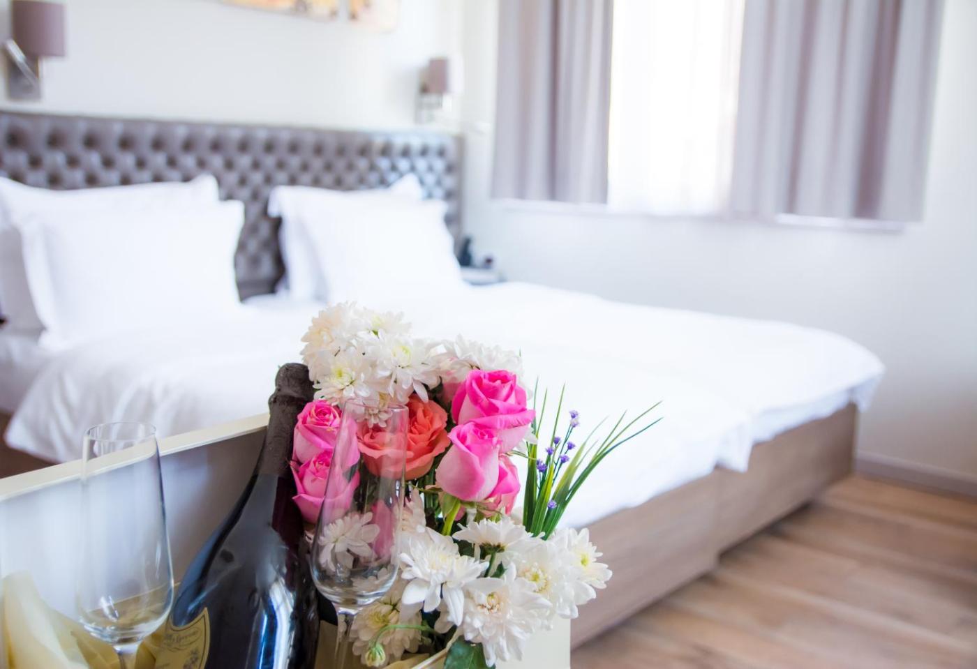 Deluxe Apartment with Free Parking. Featuring a private entrance, this air-conditioned apartment consists of a kitchen, 1 bedroom and 1 bathroom with a walk-in shower and a hairdryer. The kitchen is equipped with a stovetop, a refrigerator and kitchenware. The apartment provides soundproof walls, a minibar, a tea and coffee maker, a flat-screen TV with cable channels, as well as city views. The unit offers 1 bed. ;