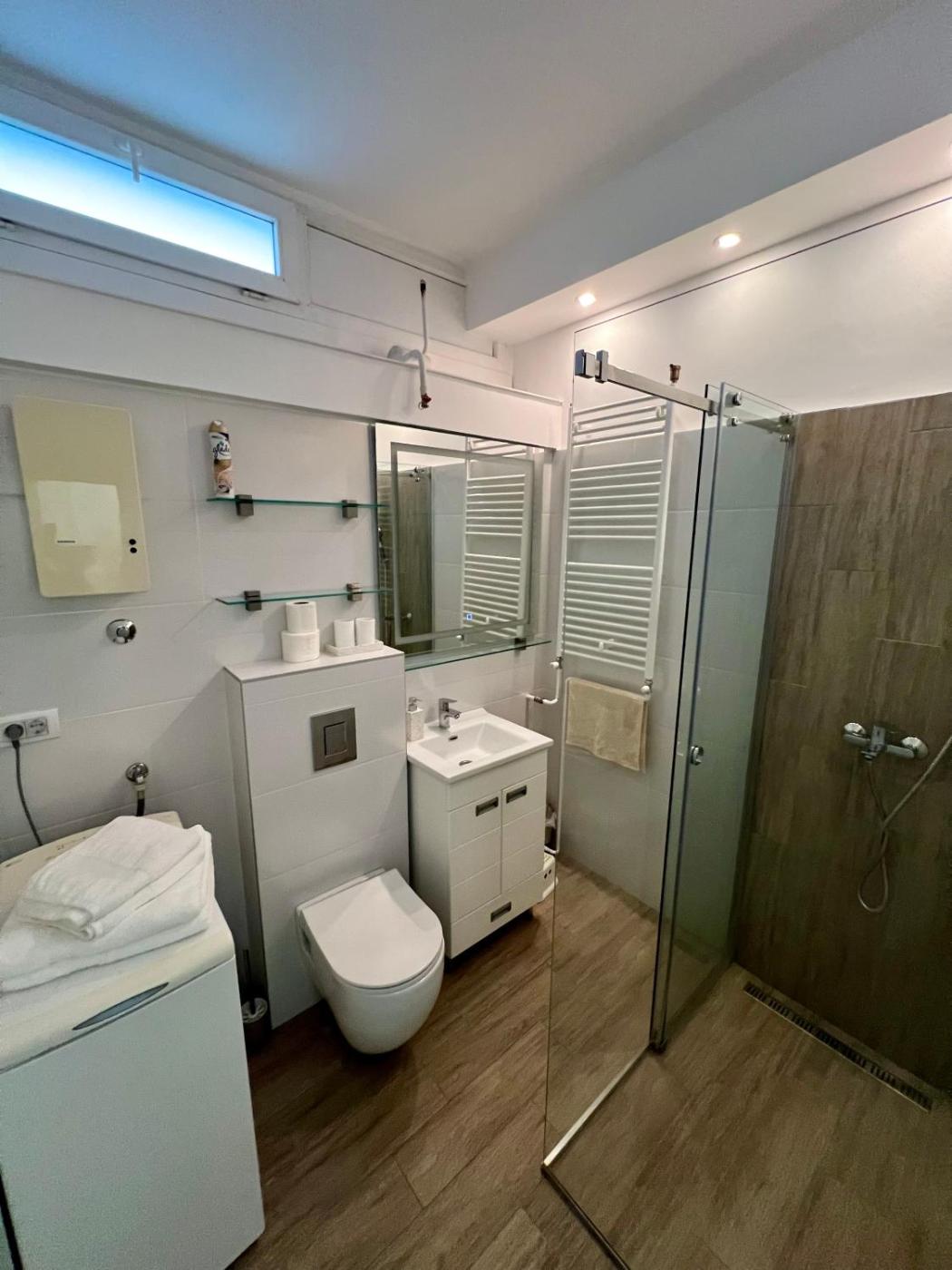 One-Bedroom Apartment. The fully equipped kitchen features a stovetop, a refrigerator, kitchenware and a microwave. This apartment is air-conditioned and has a seating area with a flat-screen TV, a washing machine, a private entrance, a coffee machine, as well as a dining area. The unit has 2 beds.