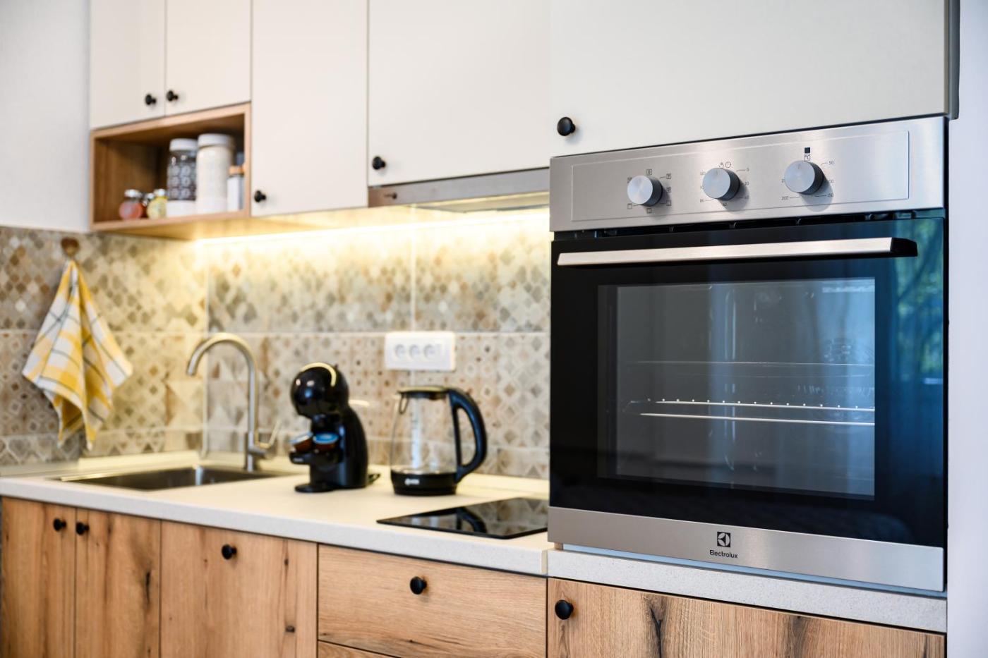 One-Bedroom Apartment. The air-conditioned apartment features 1 bedroom and 1 bathroom with a shower and a hairdryer. The well-fitted kitchen has a stovetop, a refrigerator, a dishwasher and kitchenware. The apartment offers a washing machine, a coffee machine, a dining area, a wardrobe, as well as a TV with cable channels. The unit offers 1 bed.