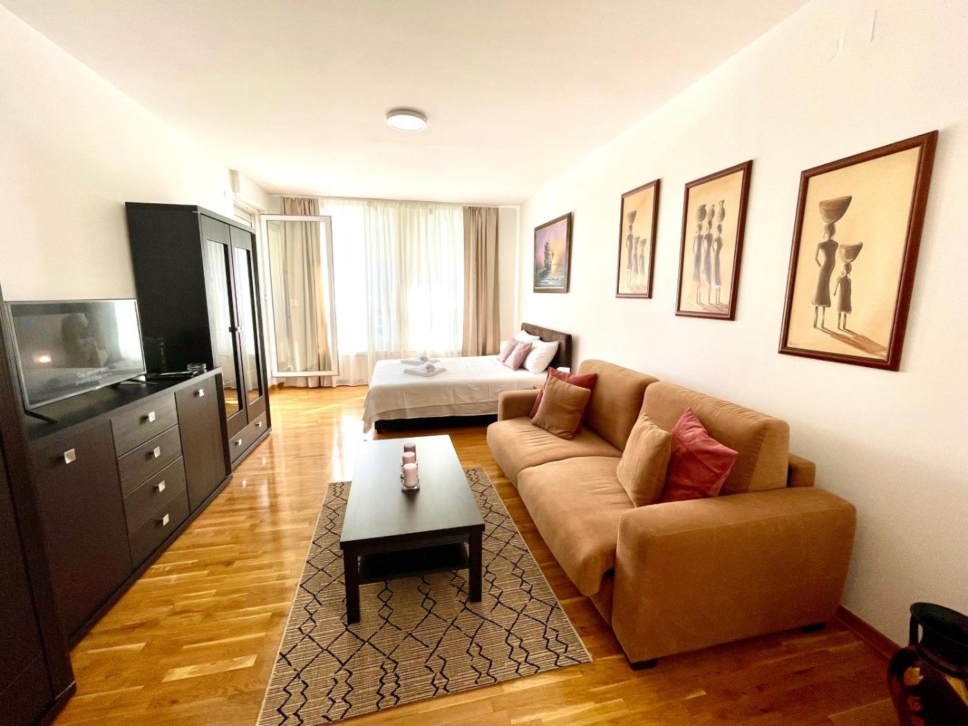 Featuring air-conditioned accommodation with a balcony, Modesti - stan na dan Novi Beograd sa parkingom 5 evra po danu is located in Belgrade. Complimentary WiFi is provided throughout the property and private parking is available on site. The property is non-smoking and is1.7 km from Belgrade Arena.