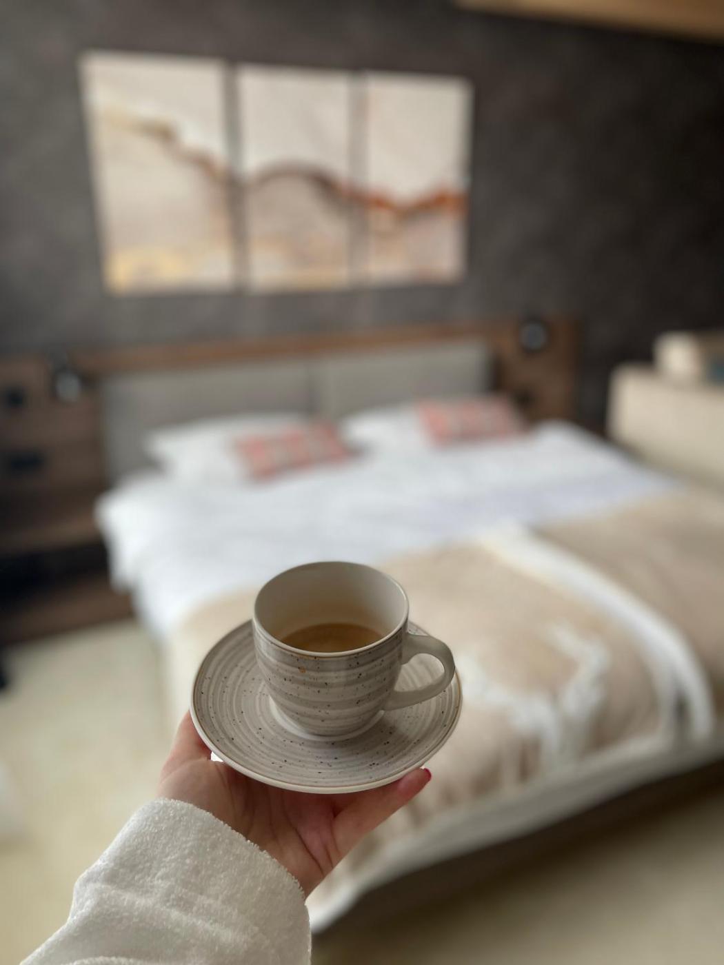 Deluxe King Studio. Guests will have a special experience as this studio offers a sauna. Offering free toiletries and bathrobes, this studio includes a private bathroom with a shower, a hairdryer and slippers. The well-fitted kitchen has a stovetop, a refrigerator, kitchenware and a tea and coffee maker. This studio features a private entrance, flat-screen TV with streaming services, mountain views, as well as winechampagne for guests. The unit offers 2 beds.