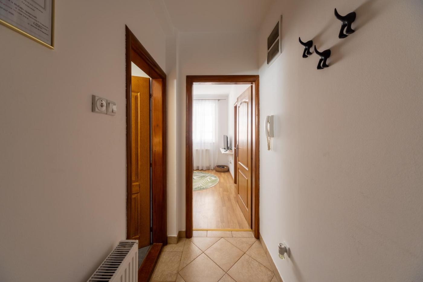One-Bedroom Apartment. Featuring a private entrance, this apartment consists of 1 living room, 1 separate bedroom and 1 bathroom with a shower and a hairdryer. Guests can make meals in the fully equipped kitchen that features a stovetop, a refrigerator and an oven. The apartment provides a seating area, a wardrobe, an electric kettle, a TV with cable channels, as well as ancourtyard view. The unit offers 1 bed.