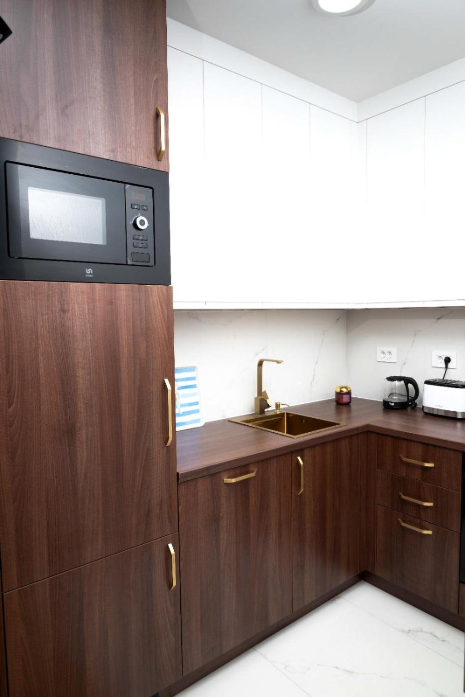 One-Bedroom Apartment. This air-conditioned apartment consists of 1 living room, 1 separate bedroom and 1 bathroom with a bath. Guests can make meals in the kitchen that is equipped with a refrigerator, a dishwasher, kitchenware and an oven. The apartment provides a flat-screen TV with streaming services, a washing machine, soundproof walls, a coffee machine as well as city views. The unit offers 2 beds.