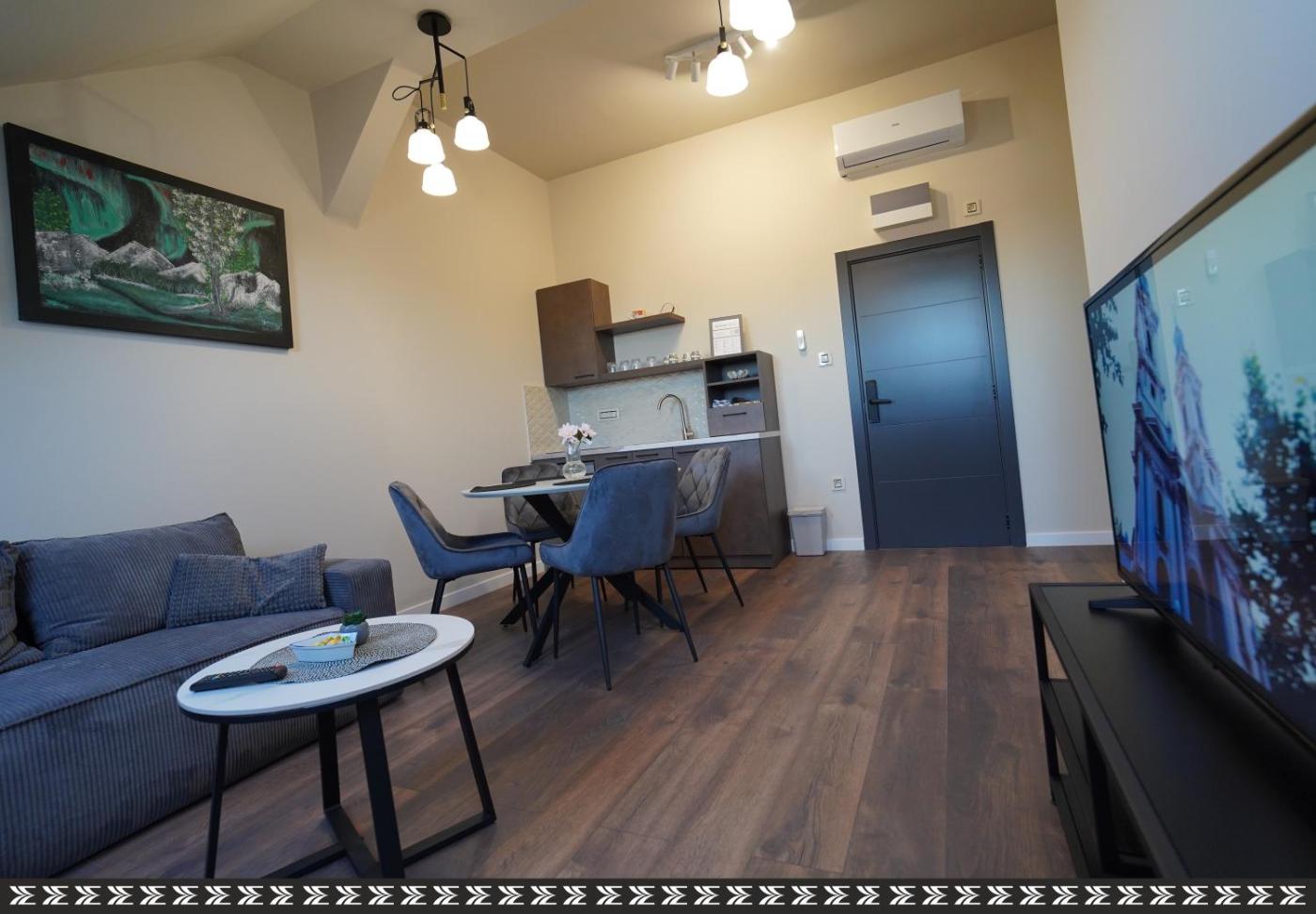 One-Bedroom Apartment. Featuring a private entrance, this air-conditioned apartment comprises 1 bedroom and 1 bathroom with a walk-in shower. Meals can be prepared in the well-fitted kitchen, which comes with a stovetop, a refrigerator and kitchenware. The apartment features parquet floors, a seating area with a flat-screen TV, soundproof walls, a dining area as well as city views. The unit offers 2 beds.