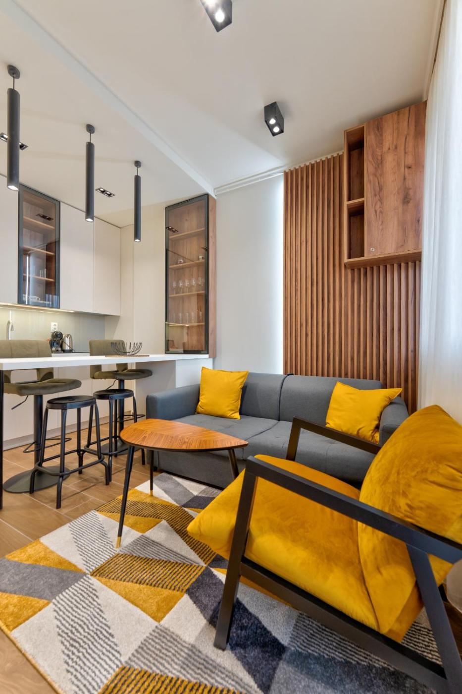 One-Bedroom Apartment. This apartment is comprised of 1 living room, 1 separate bedroom and 1 bathroom with a hairdryer and slippers. The apartments kitchen, which features a refrigerator, is available for cooking and storing food. Featuring a terrace, this apartment also offers a tea and coffee maker, a wardrobe and a flat-screen TV with cable channels. The unit offers 2 beds.