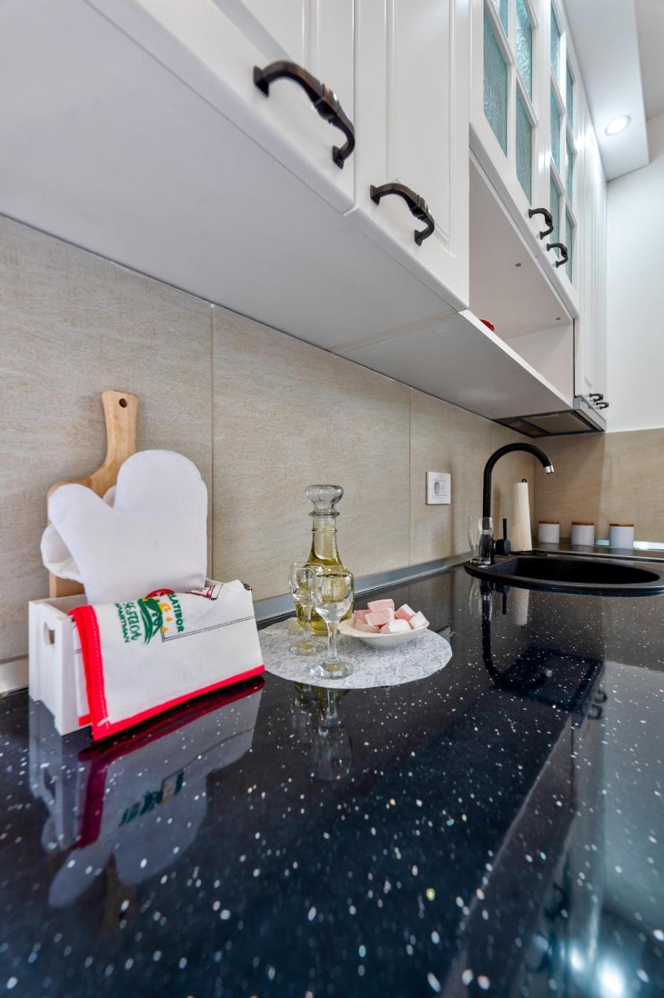 The apartment is located on the ground floor and is equipped with 1 bedroom, a flat-screen TV with cable channels and a fully equipped kitchen that provides guests with an oven, a fridge, a washing machine, a stovetop and kitchenware. Towels and bed linen are provided in the apartment. Additional in-room amenities include wine or champagne.